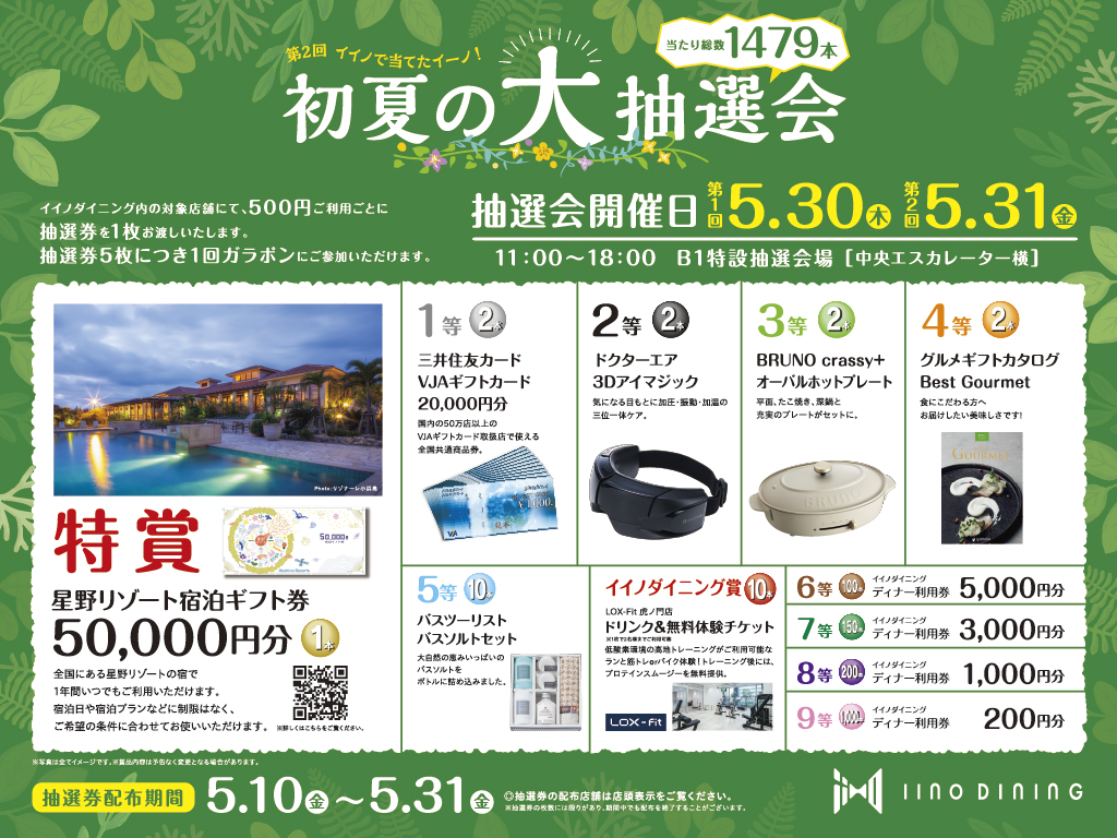 - 『初夏の大抽選会』のご案内(5/10~5/31)