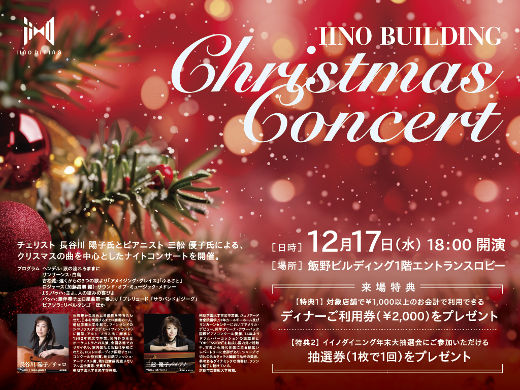 - 2023. 12. 7 (Thu)イイノダイニング クリスマスコンサート(12/20開催)のご案内